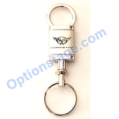 Chevrolet Corvette C5 Satin Chrome Valet Keychain with Detachable Ring Key Fob Feature