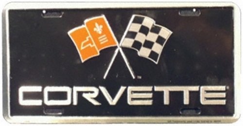 Corvette with flags embossed metal auto tag 6 x 12 Review