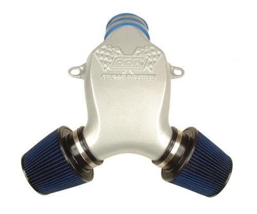BBK Titanium Silver Powder Coated Cold Air Induction Intake System with Cast Aluminum Inlet for GM C-6 Corvette for all BBK cold air intake systems utilize a high flow washable conical cotton element filter and most are designed as fender well units to maximize performance. In addition to the standard hand polished and chrome plated cold air intake systems, BBK now offers a variety of kits utilizing a custom designed lightweight aluminum inlet casting. It is hand polished and chrome plated. These trick castings deliver unmatched quality and a custom fit for a variety of auto and truck applications.
